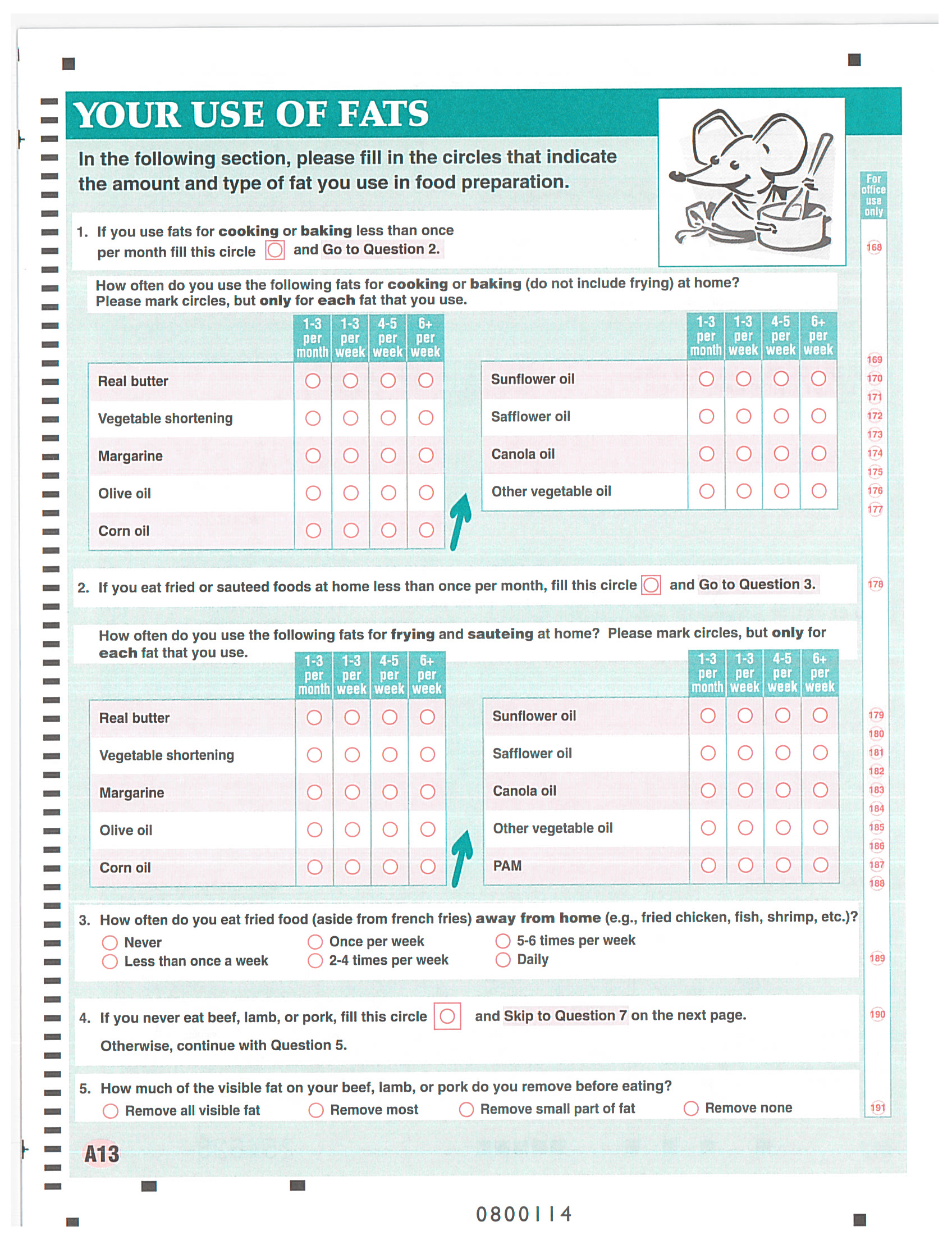 * Question 5 about removal of visible fat was moved to this page from B14