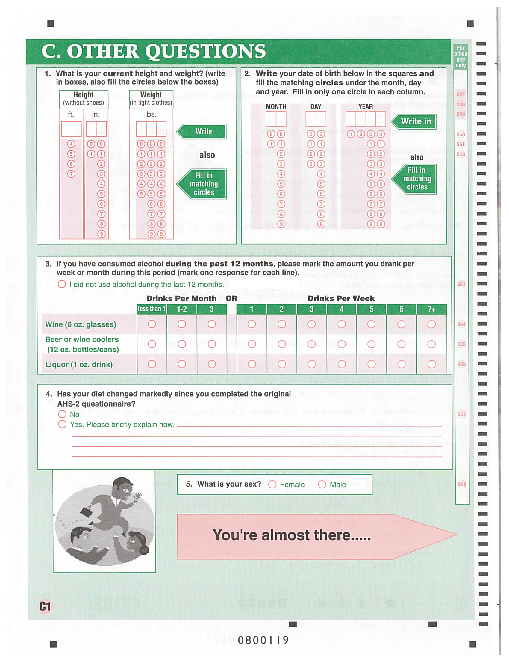 * This page contains questions about various demographic information, including height and weight.