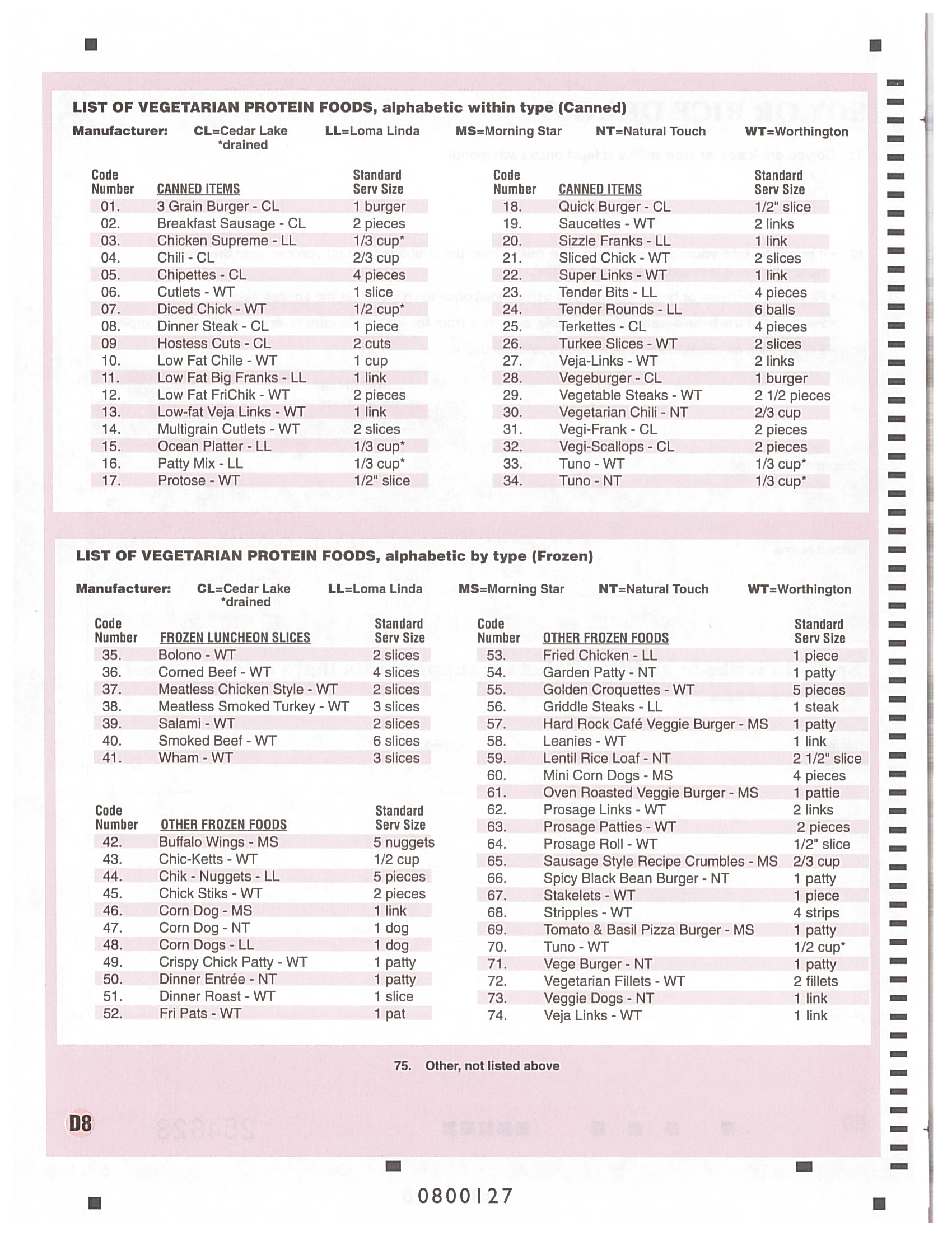 * This page contains codes for vegetarian protein foods (meat substitutes)