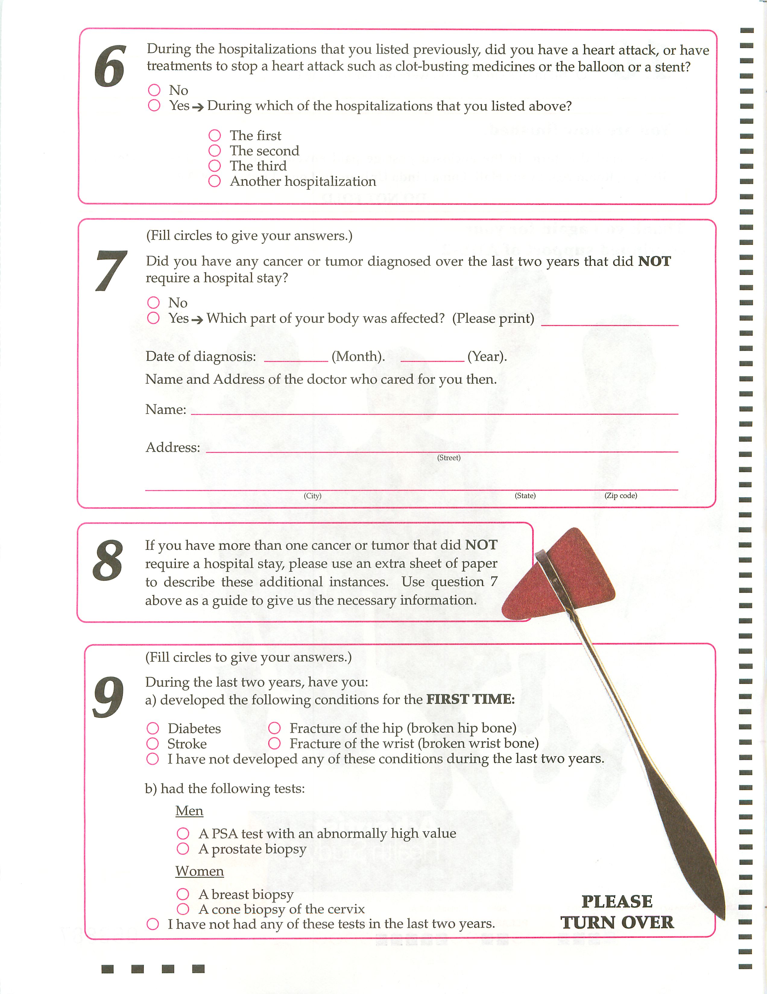 Question 7 (Cancer/Tumor DX w/in 2yrs w/o hospital stay)