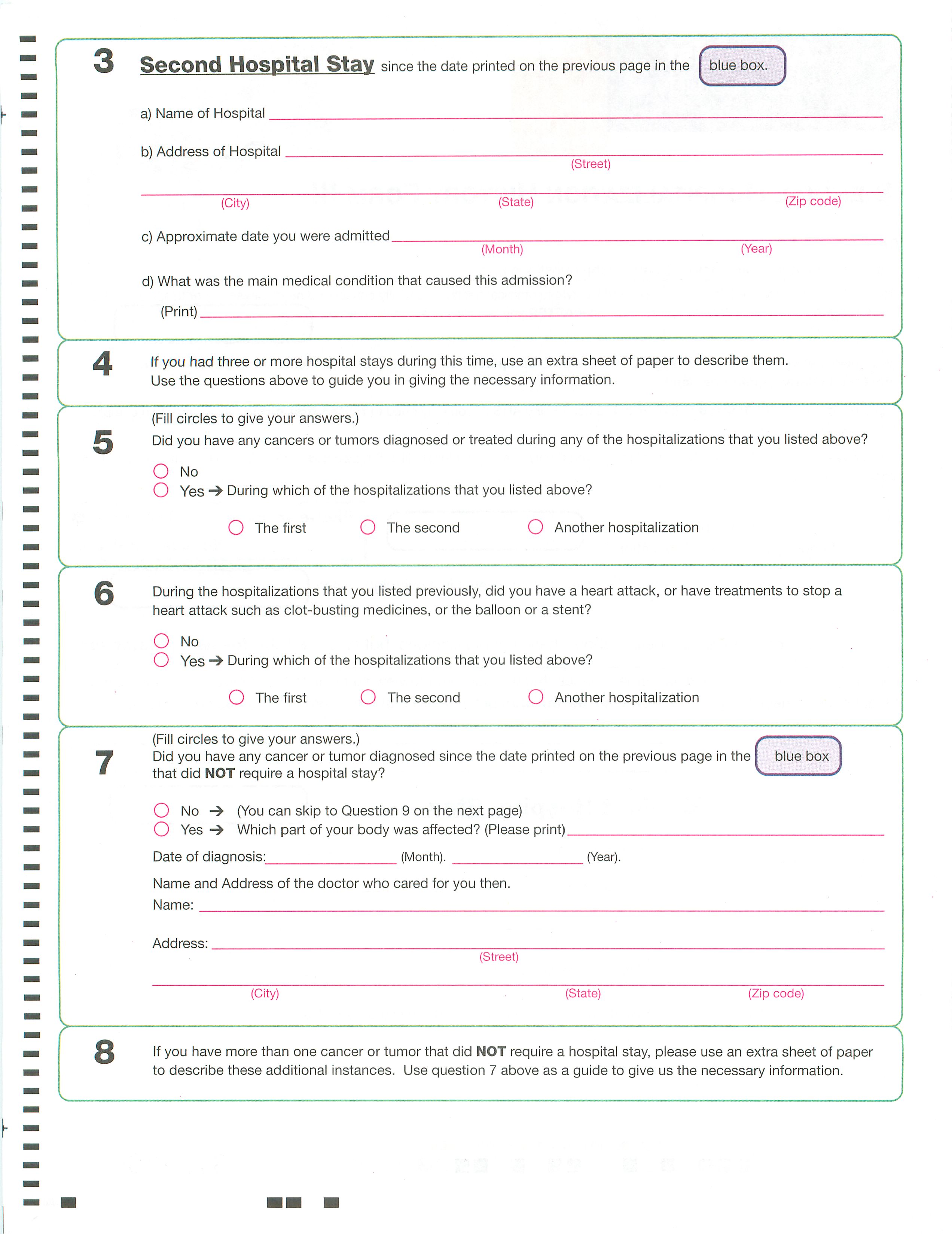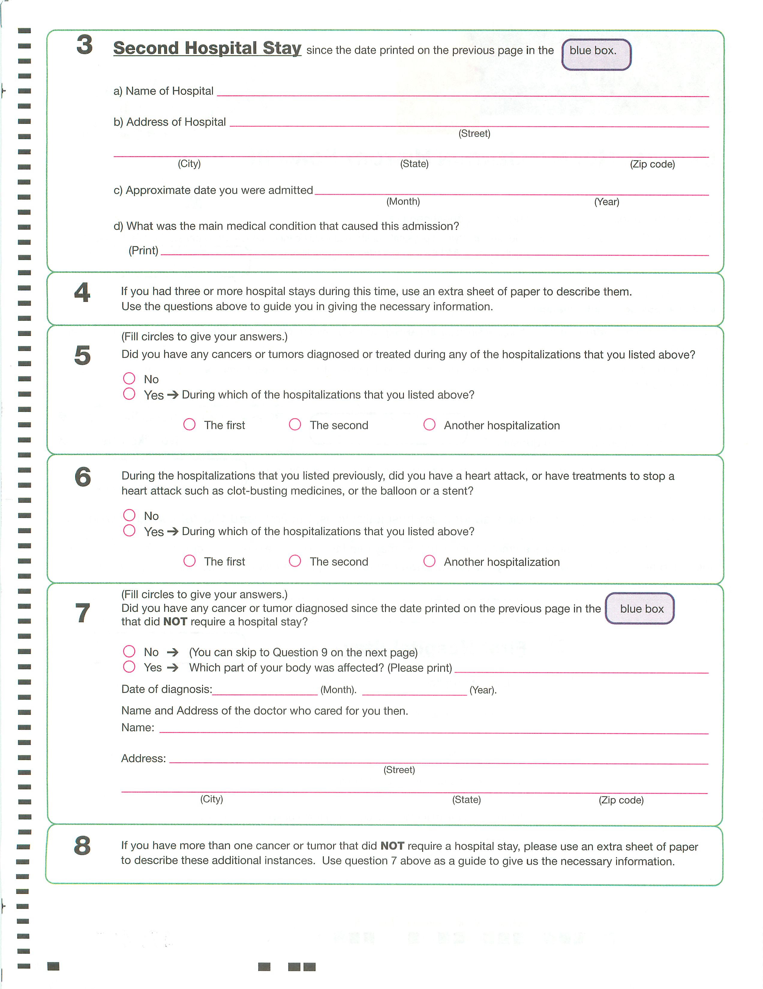 Question 7 (First Cancer or Tumor Diagnosed NOT Requiring Hospitalization)
