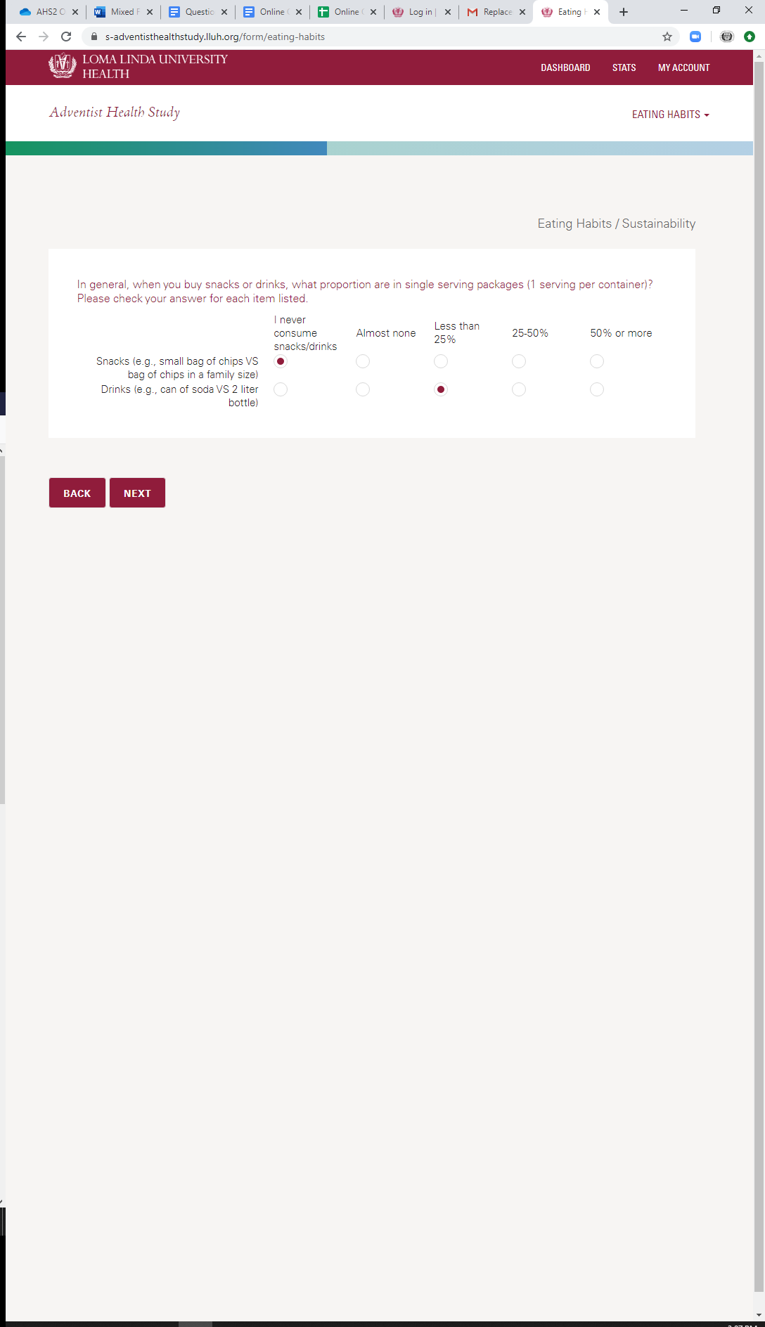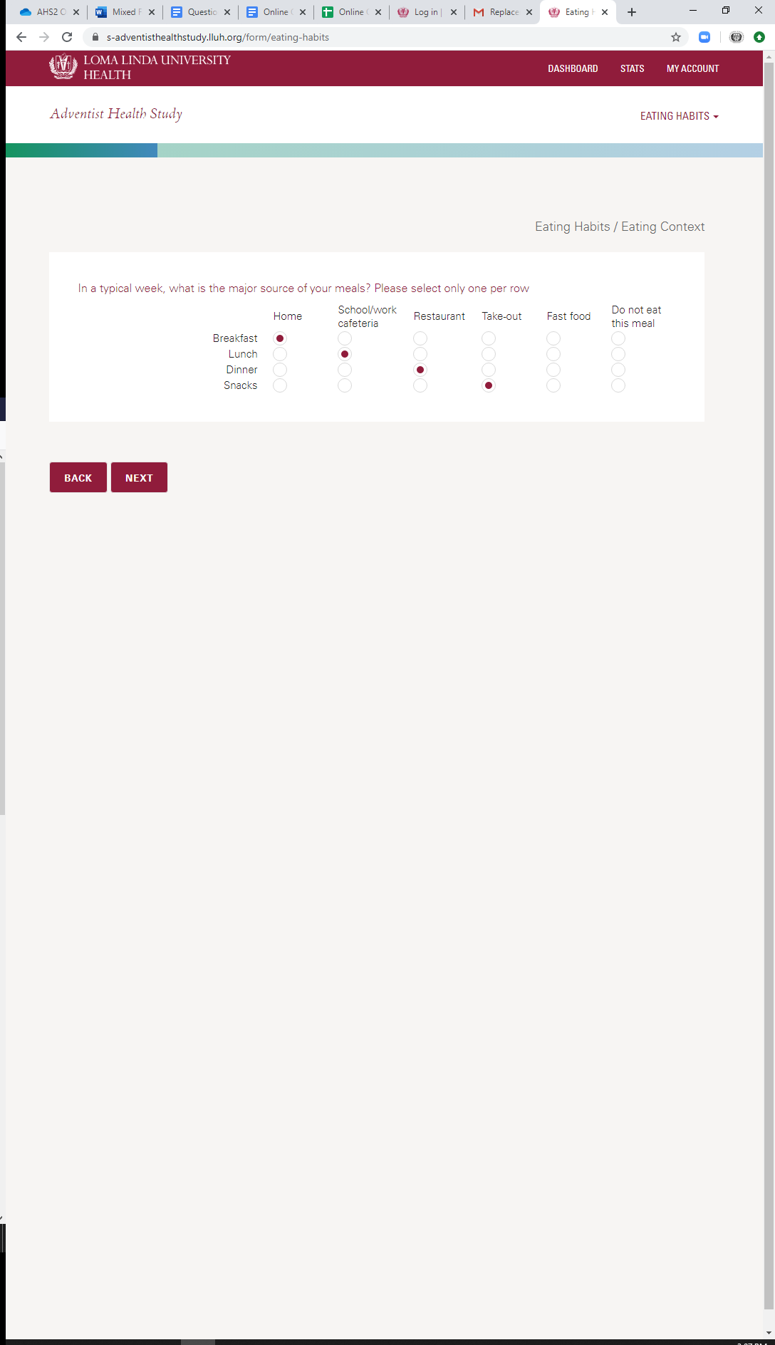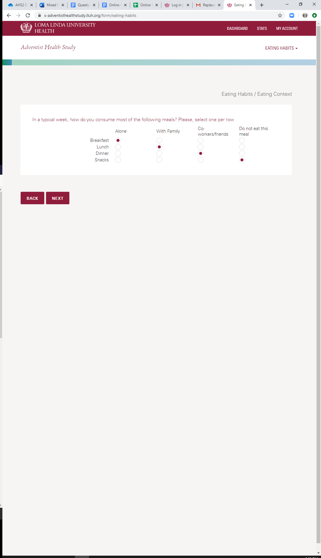 * This question concerns the size and time of your meals and snacks on a routine day. Make a selection for each time that you eat.
