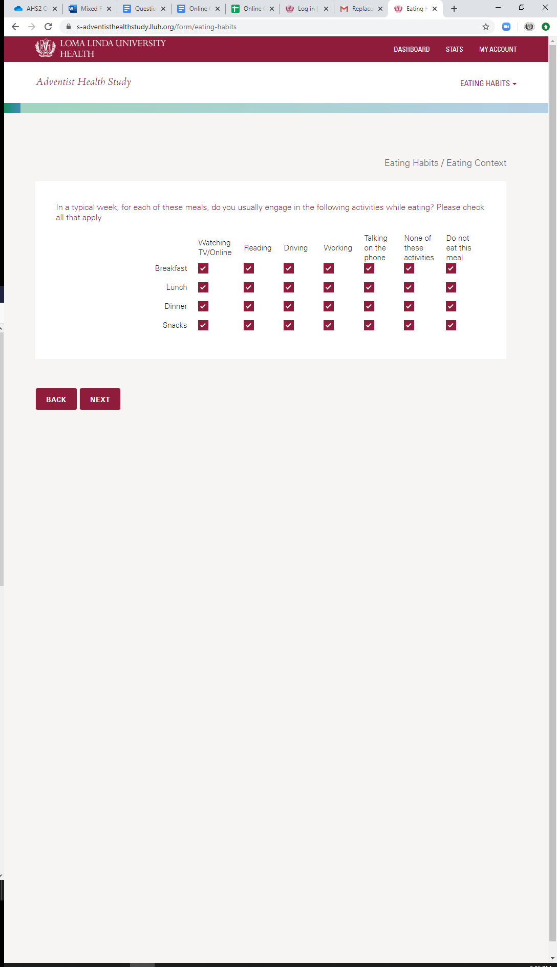 * IN A TYPICAL WEEK, FOR EACH OF THESE MEALS, DO YOU USUALLY ENGAGE IN THE FOLLOWING ACTIVITIES WHILE EATING?