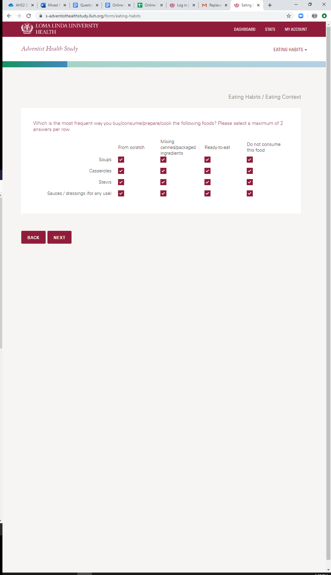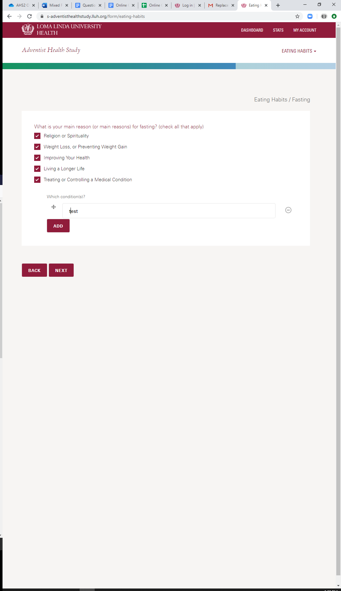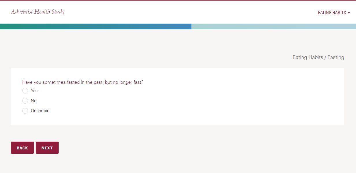 * Fasting: Reasons (only shows up if "yes" to first fasting question)