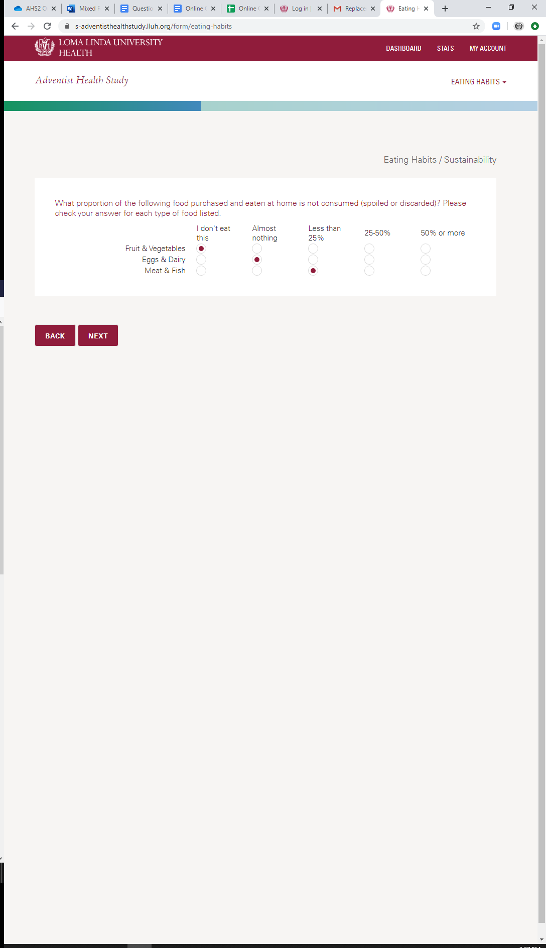 * WHAT PROPORTION OF THE FOLLOWING FOOD PURCHASED AND EATEN AT HOME IS NOT CONSUMED (SPOILED OR DISCARDED)?