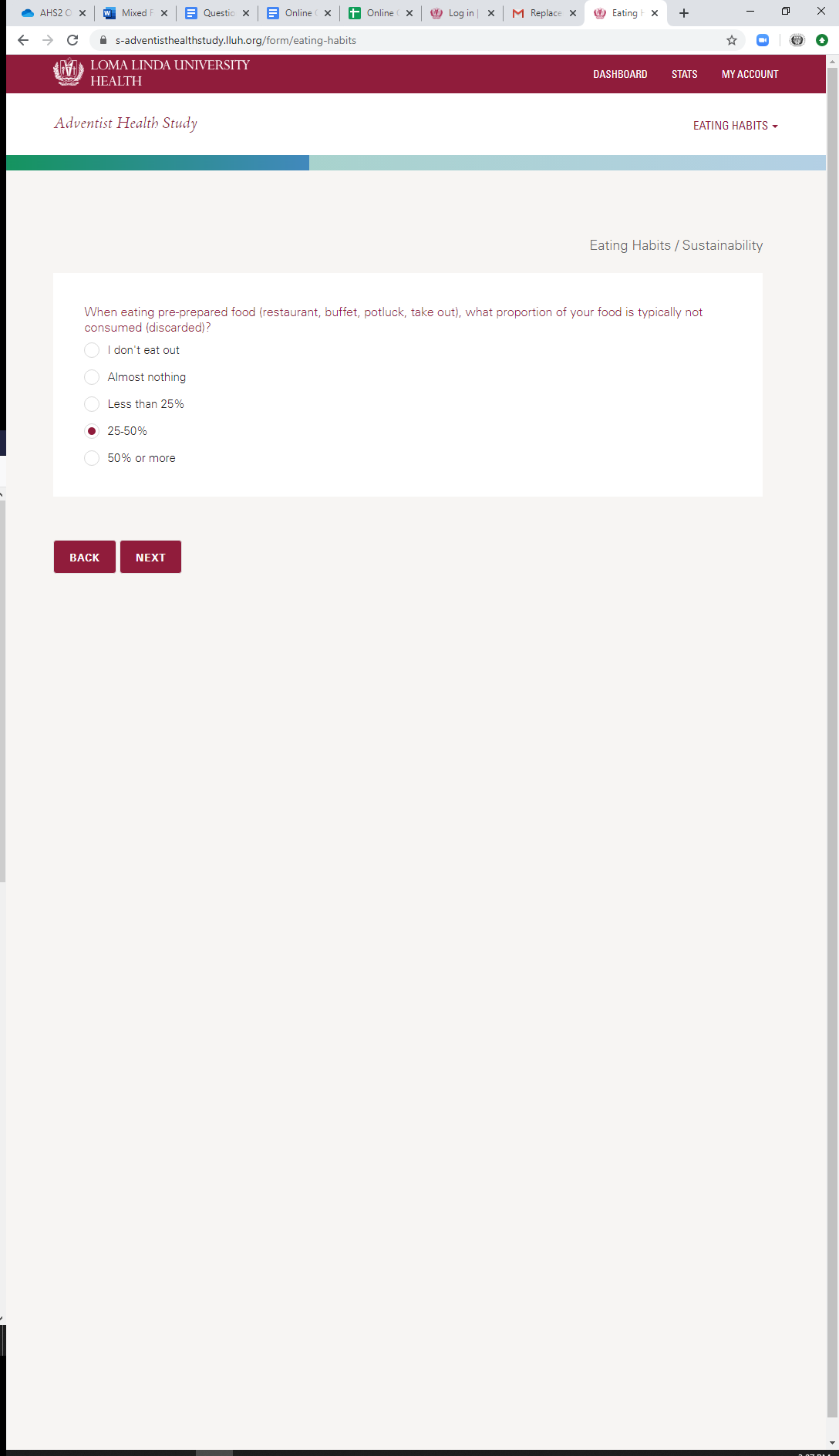 * WHEN EATING PRE-PREPARED FOOD (RESTAURANT, BUFFET, POTLUCK, TAKE OUT), WHAT PROPORTION OF YOUR FOOD IS TYPICALLY NOT CONSUMED (DISCARDED)?