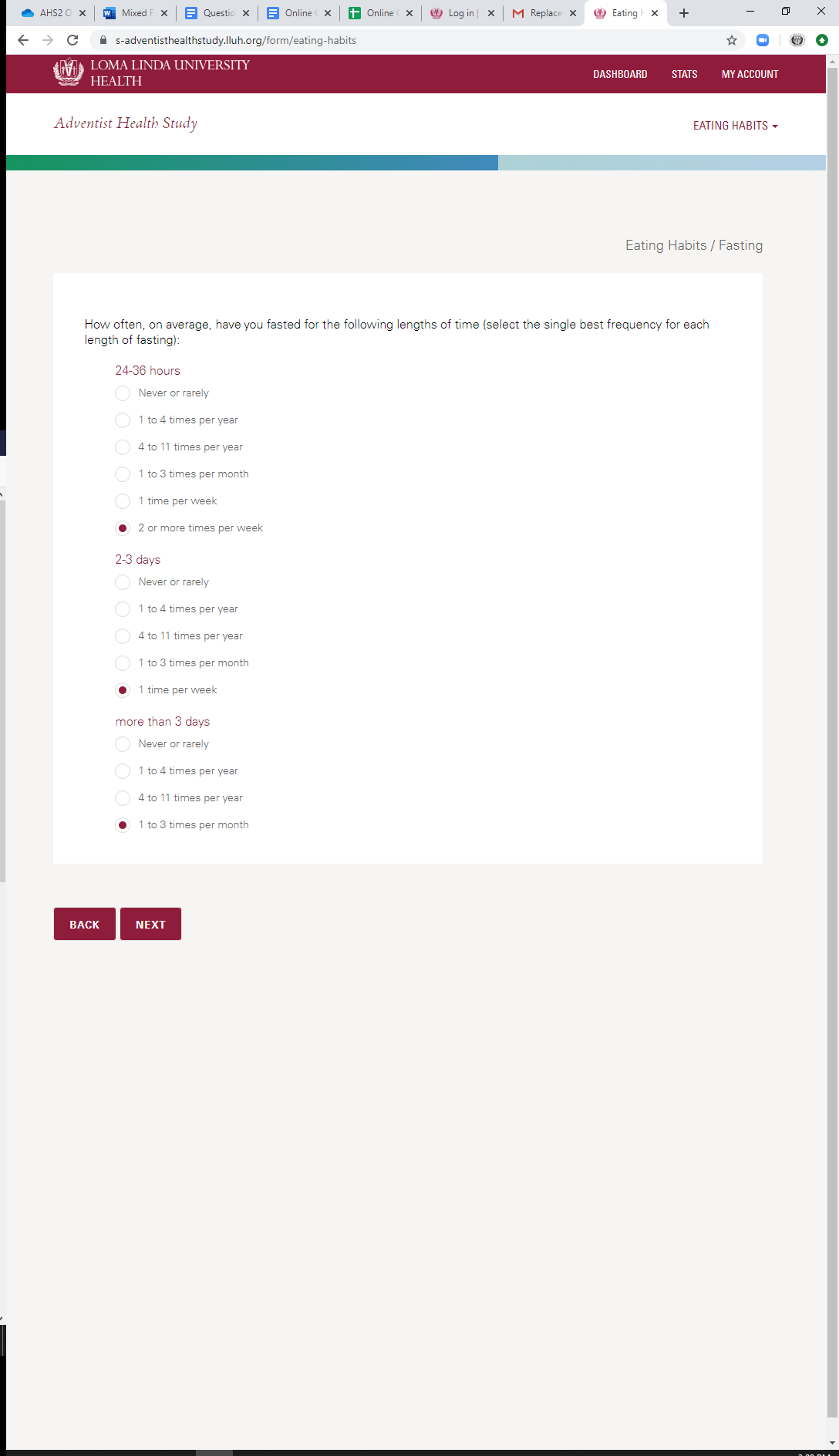 * Fasting: Frequency (only shows up if "yes" to first fasting question)