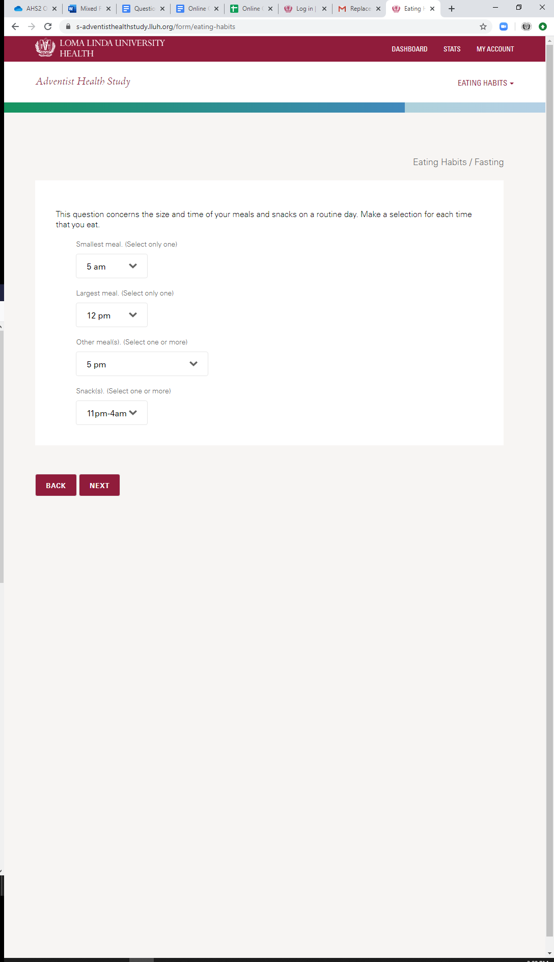 * Short Fasting (only shows up if "yes" to first fasting question)