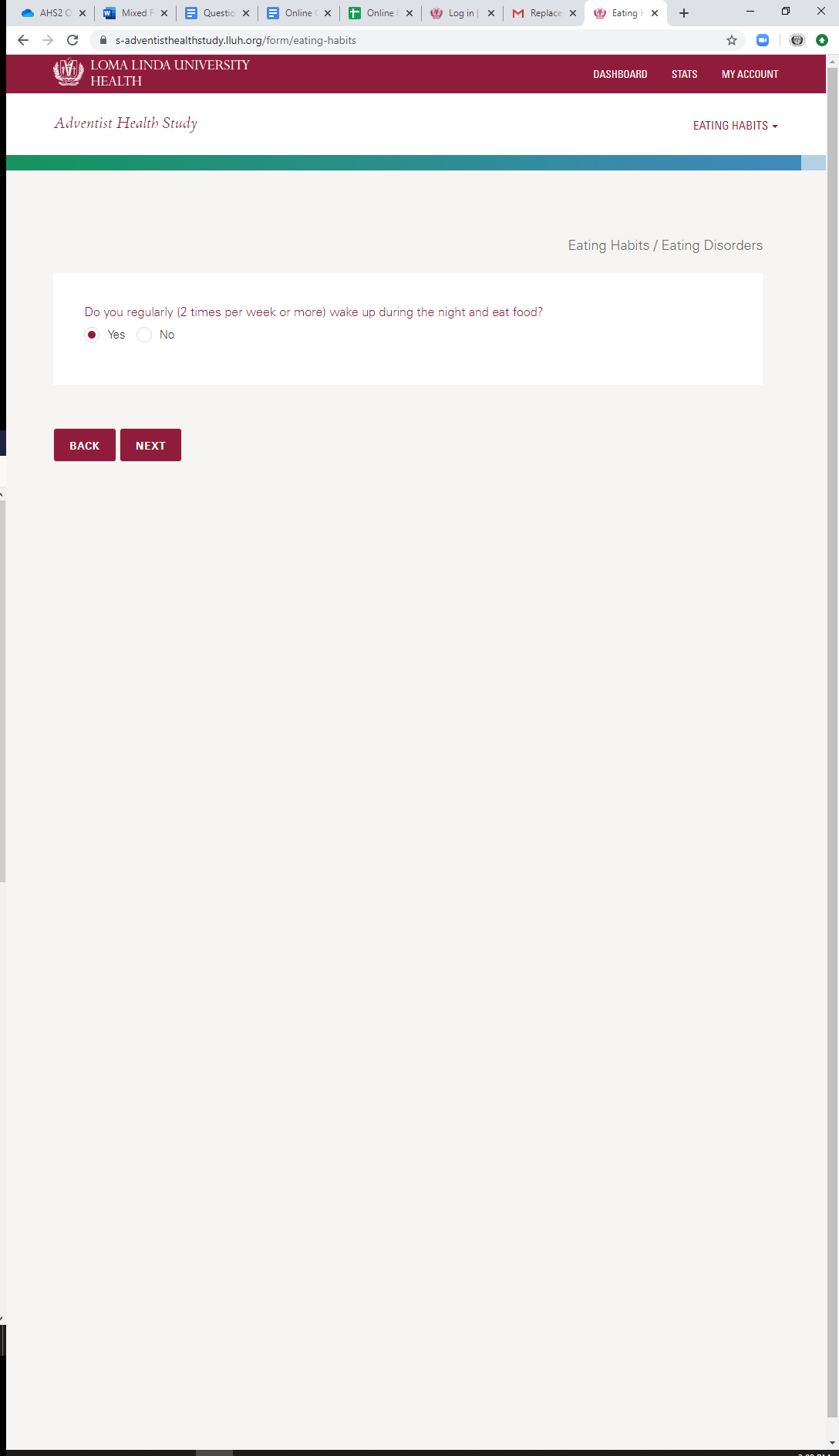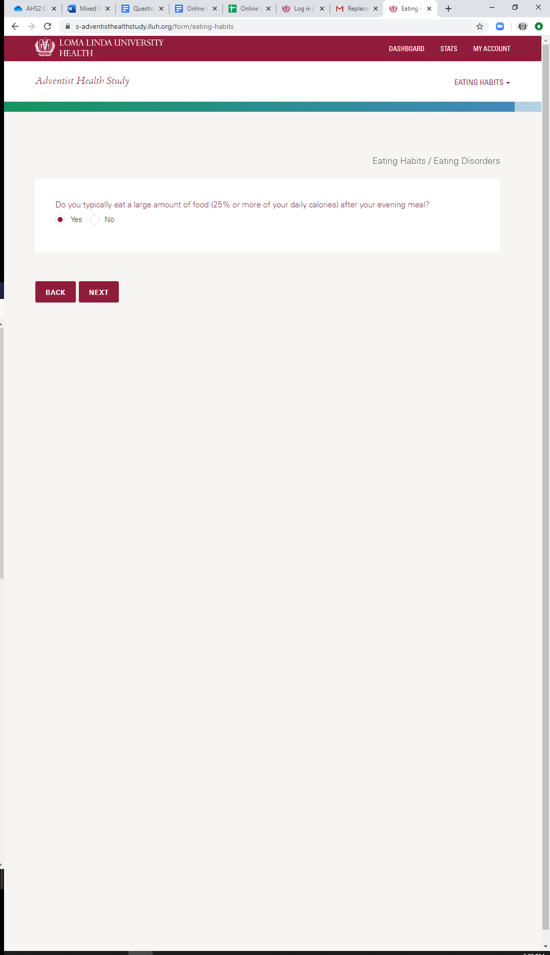 * DO YOU TYPICALLY EAT A LARGE AMOUNT OF FOOD (25% OR MORE OF YOUR DAILY CALORIES) AFTER YOUR EVENING MEAL?