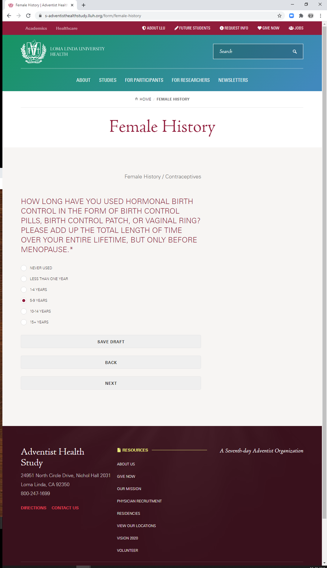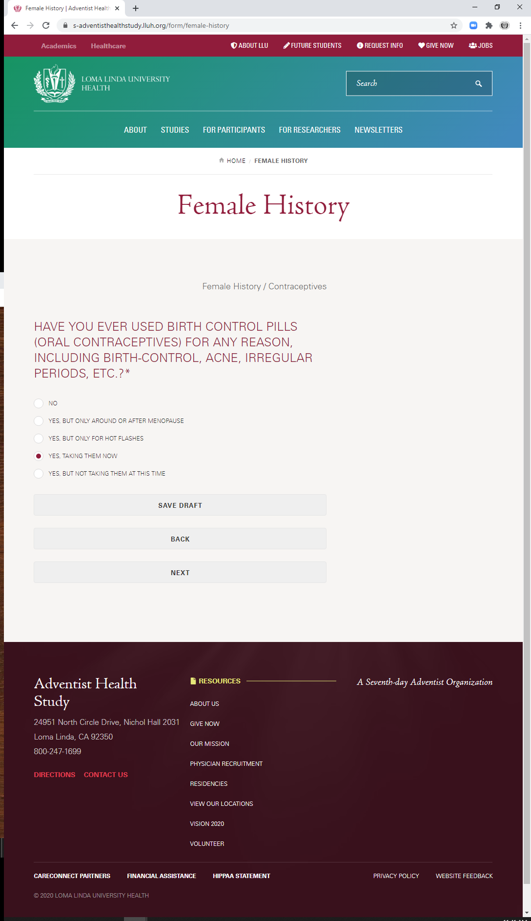 * Note: do not include the use of any form of birth control in this section.