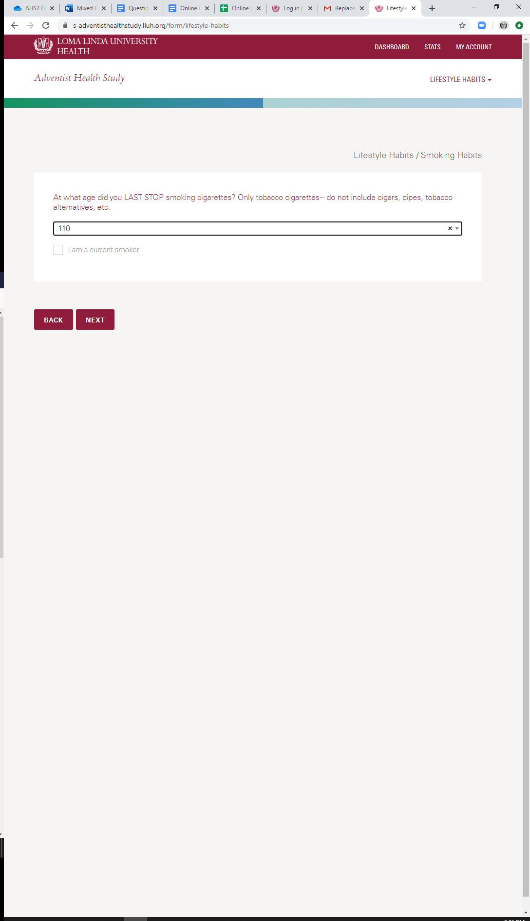 * Smoking Habits: When Stopped