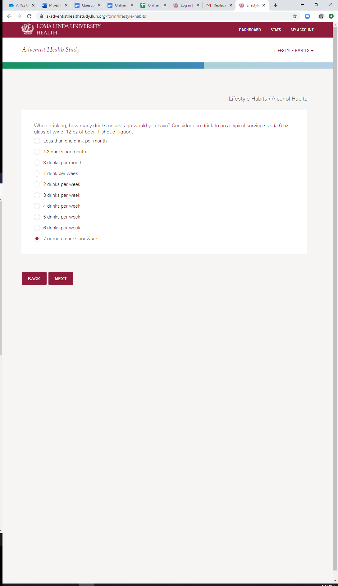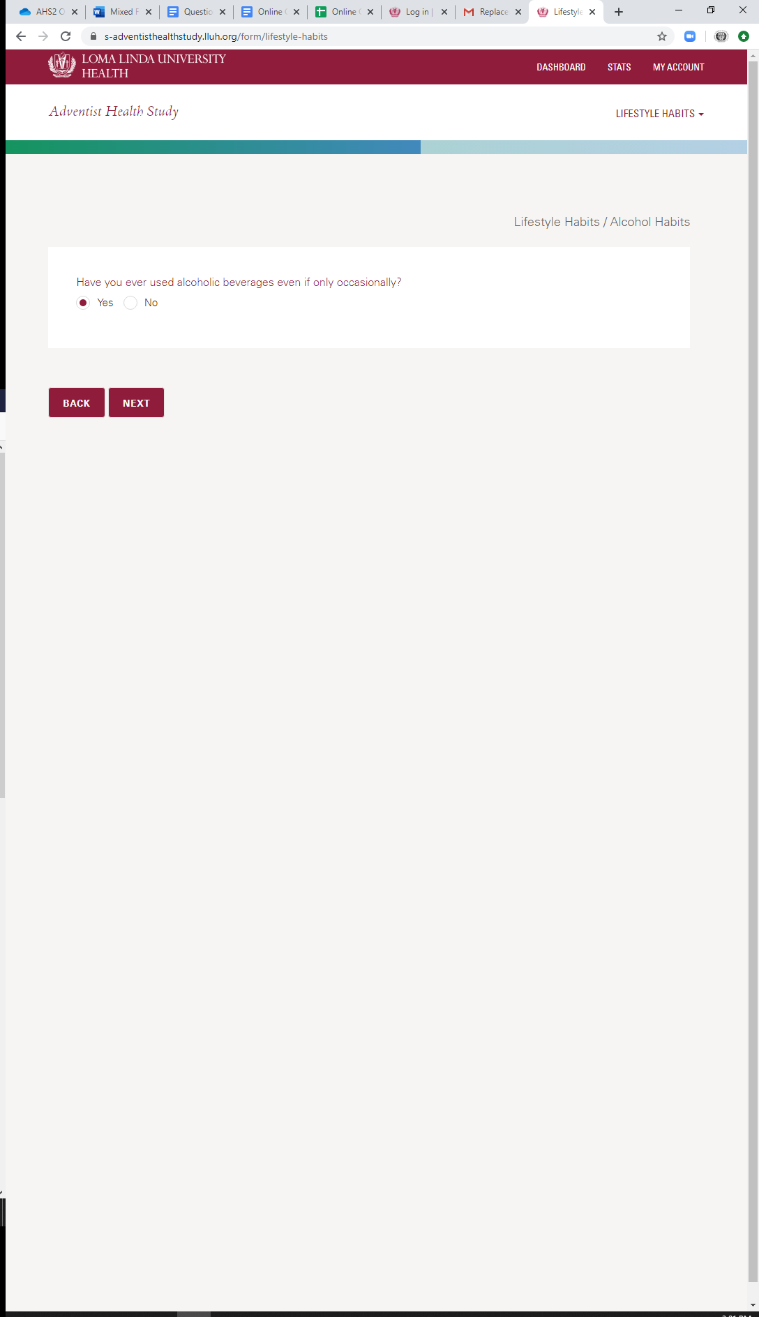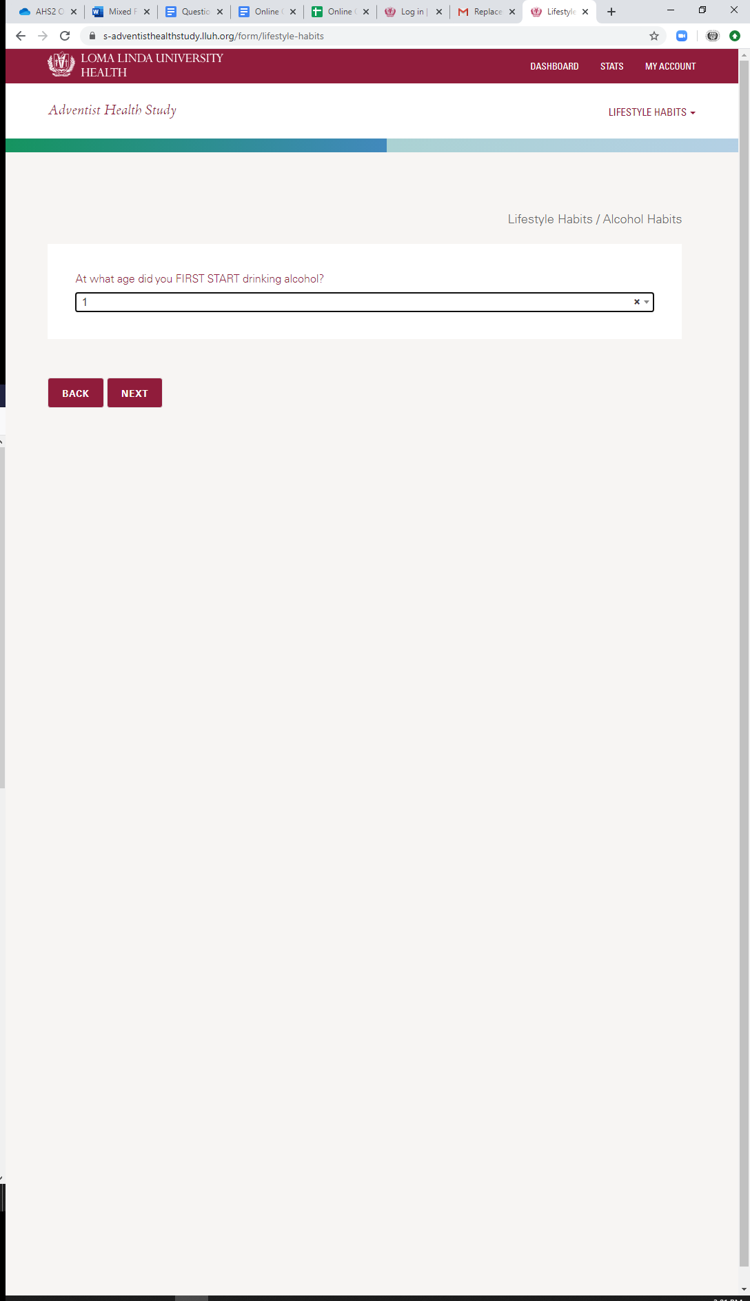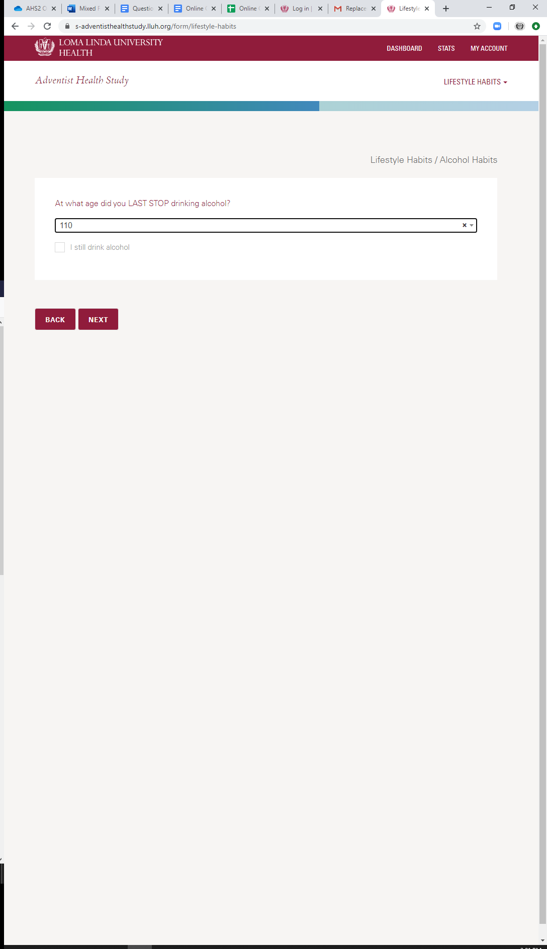 * Alcohol Habits: When Stopped