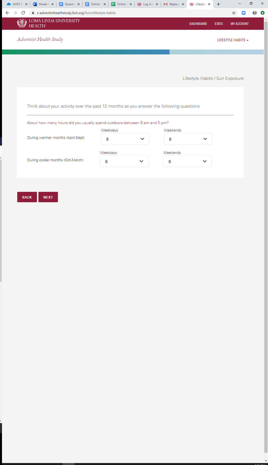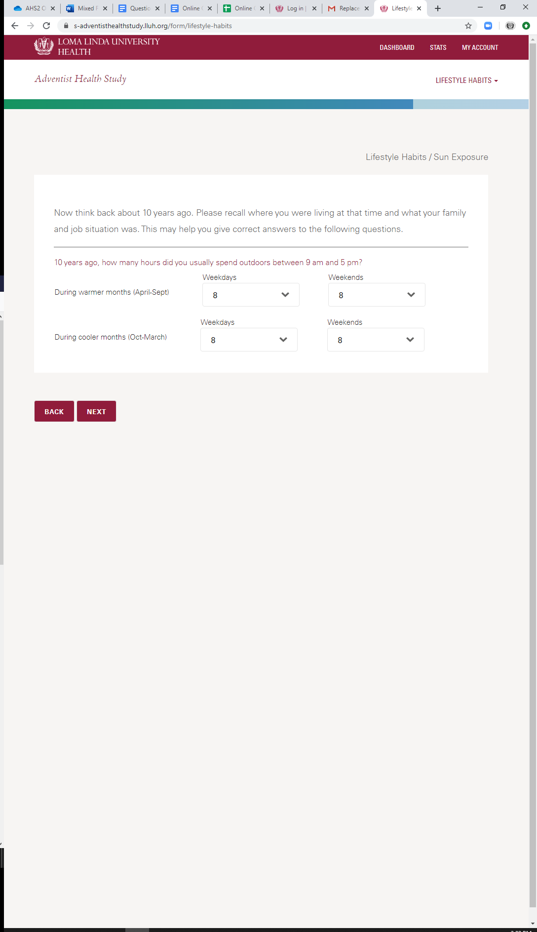 * Current Sun Exposure: Duration