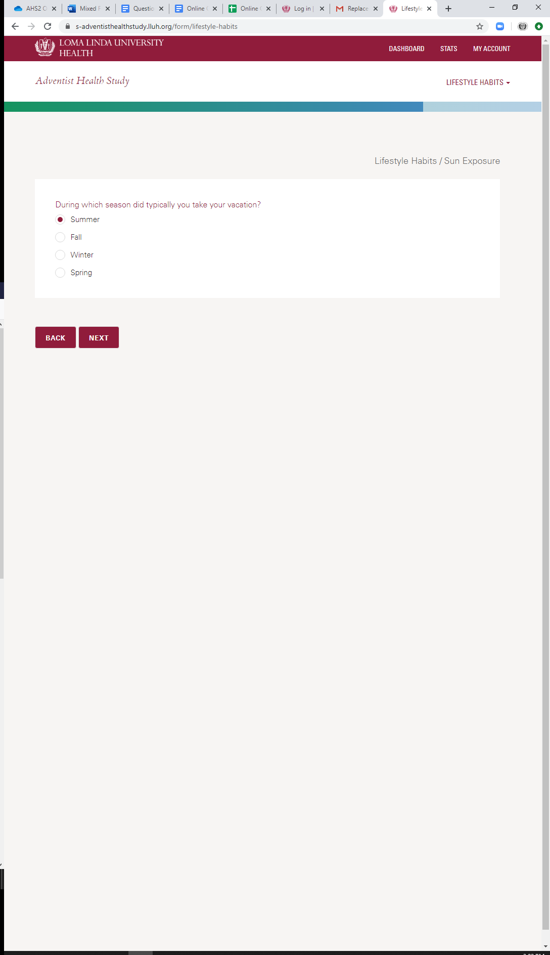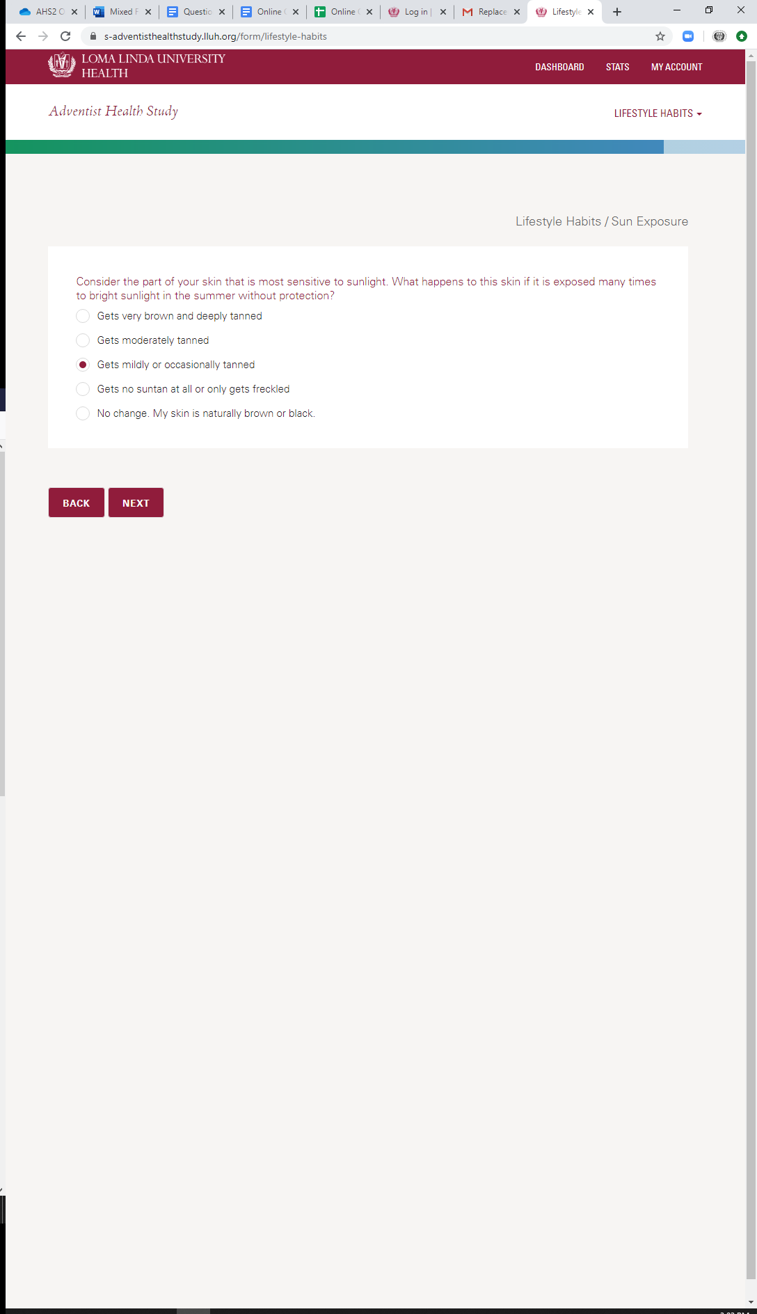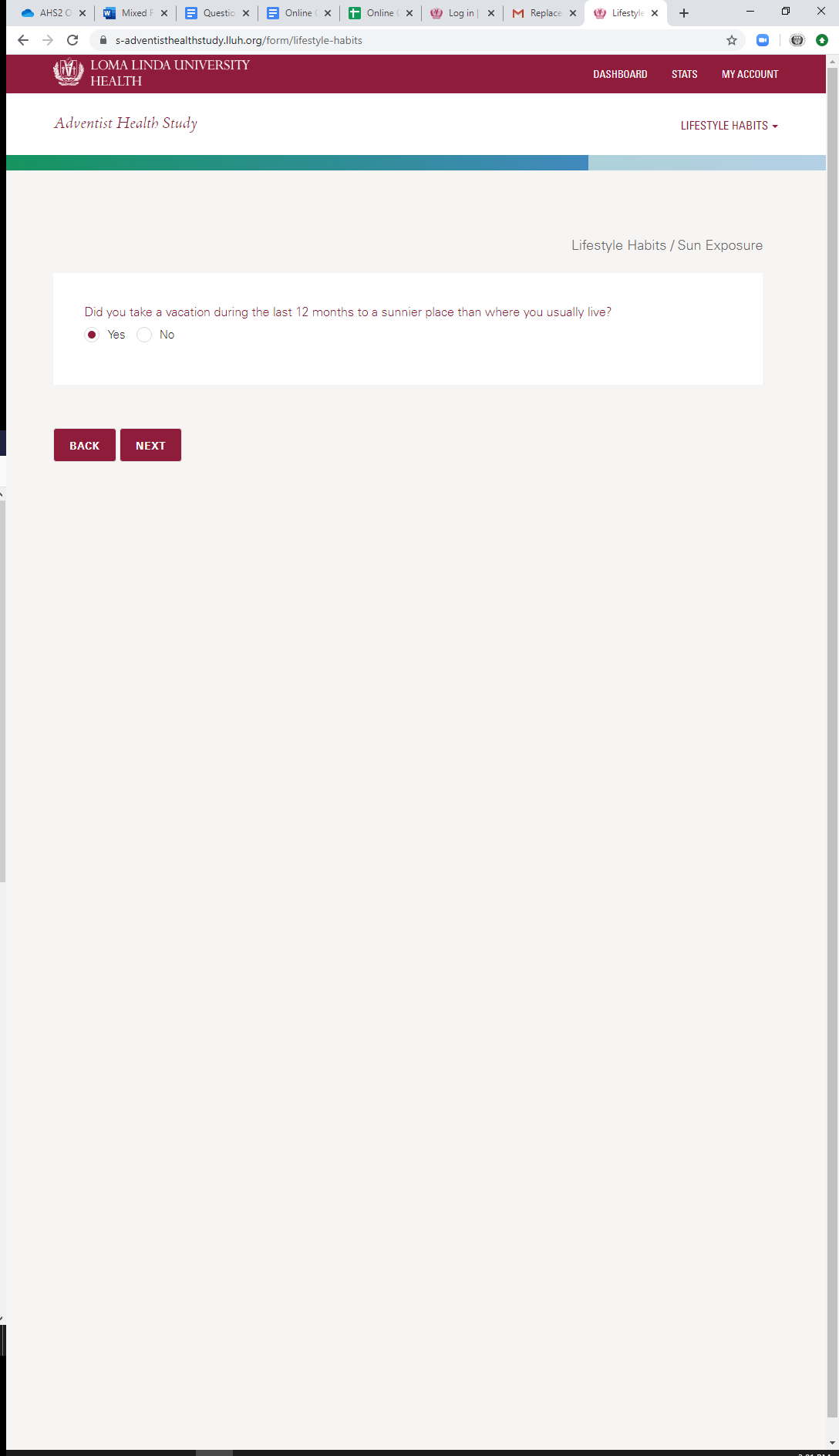 * Current Sun Exposure: Vacation