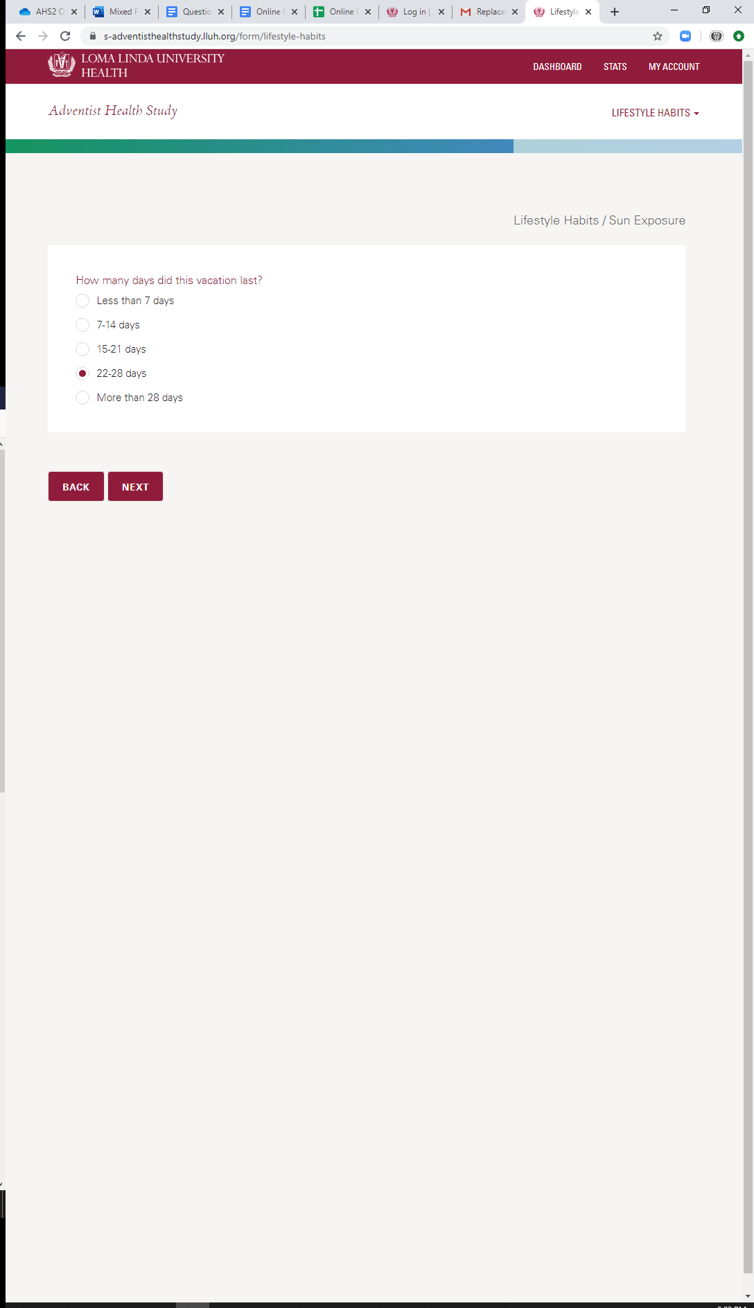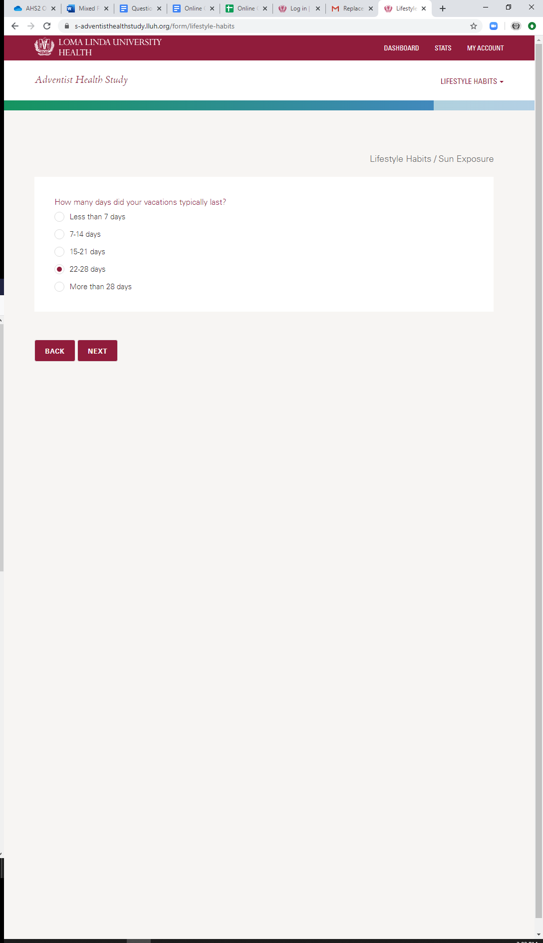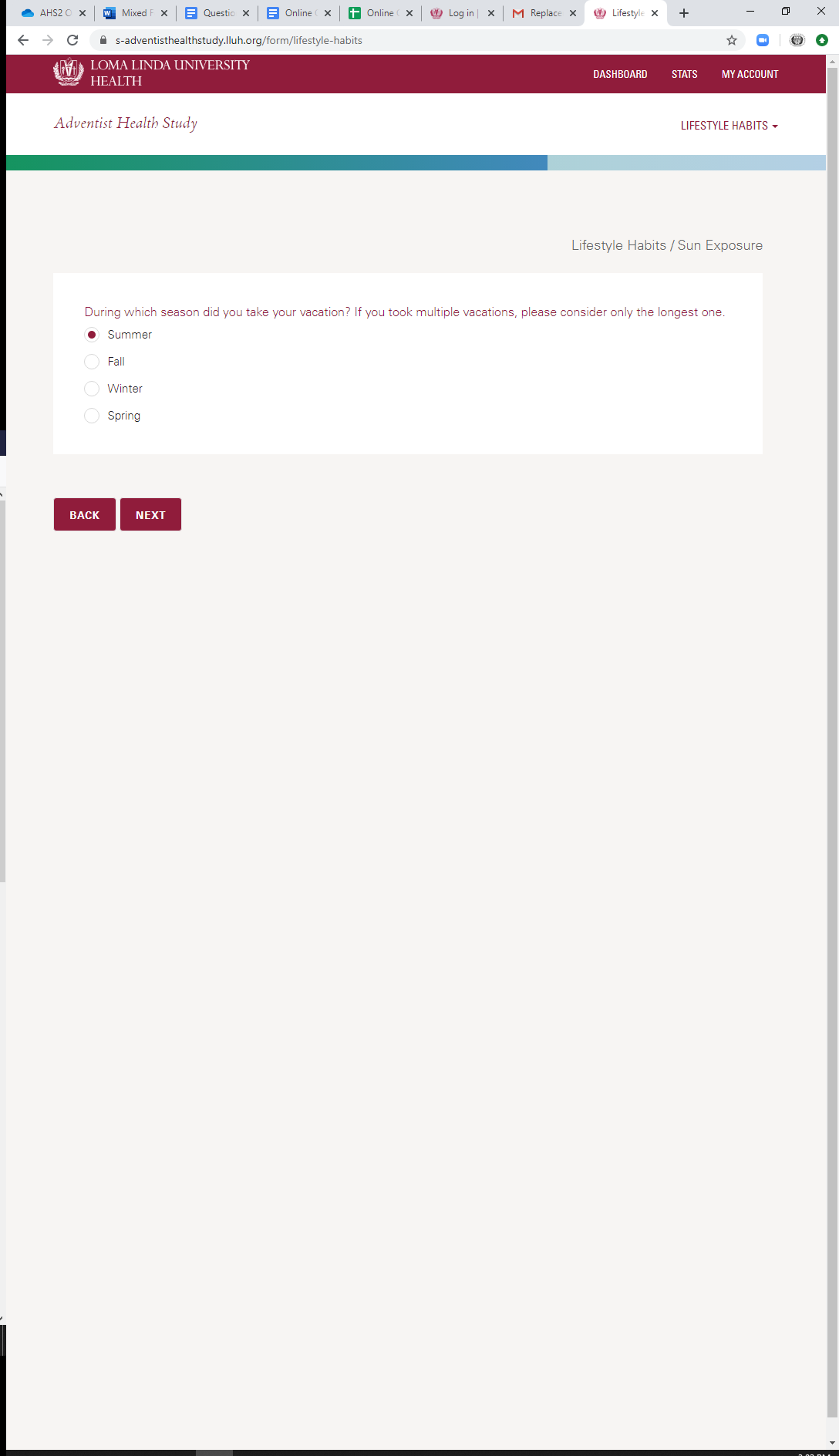 * Current Sun Exposure: Vacation