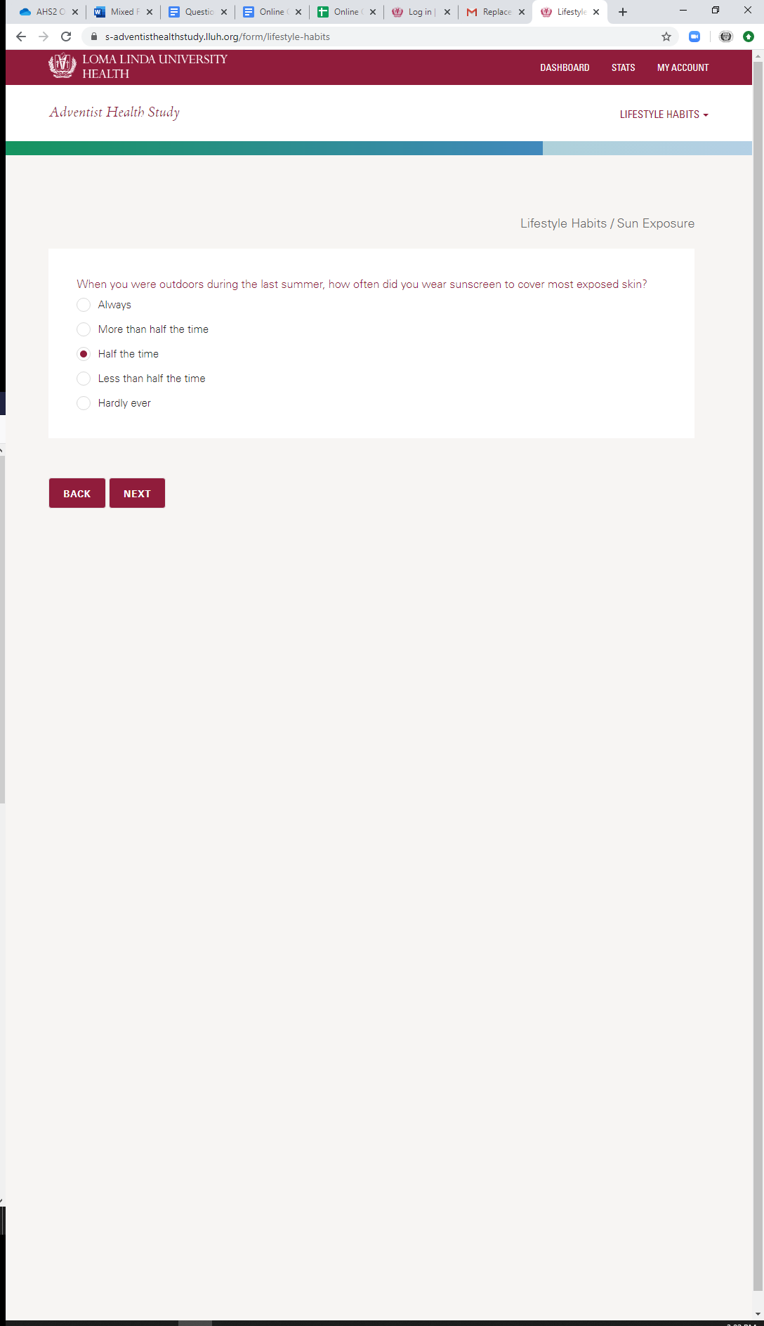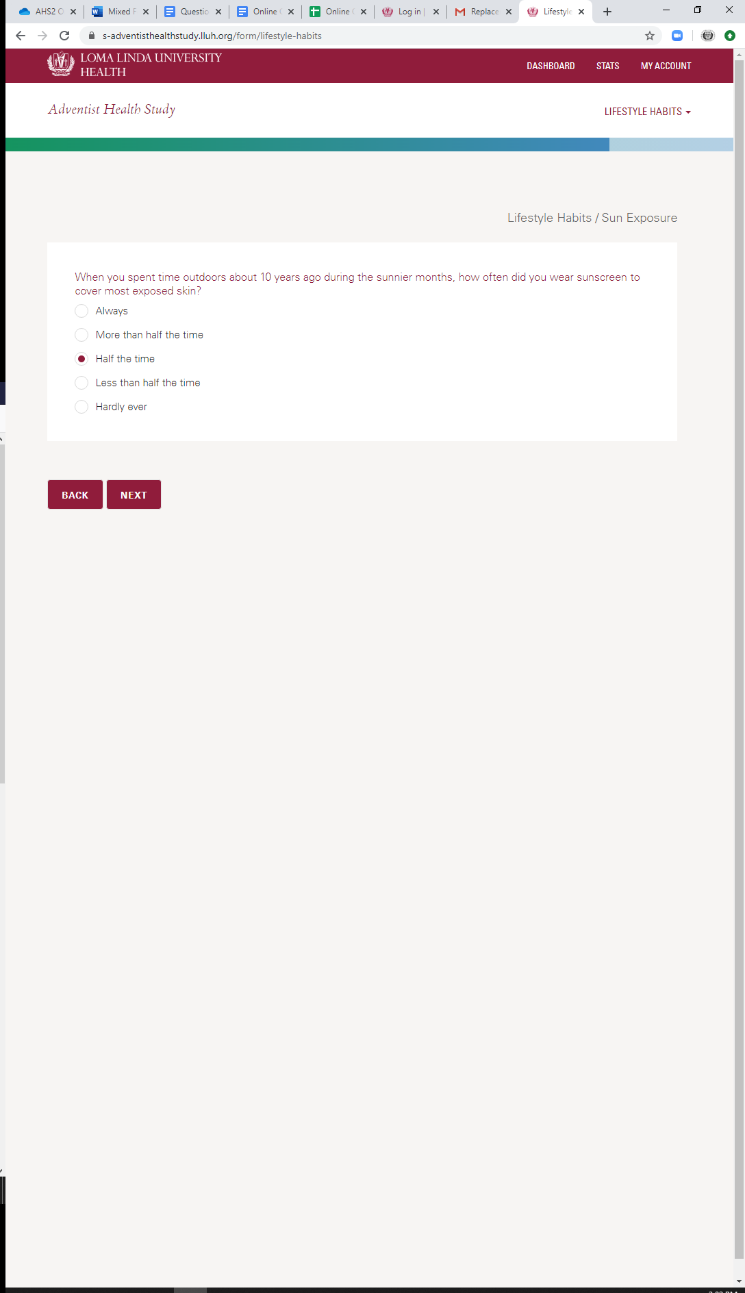 * Current Sun Exposure: Sunscreen Usage