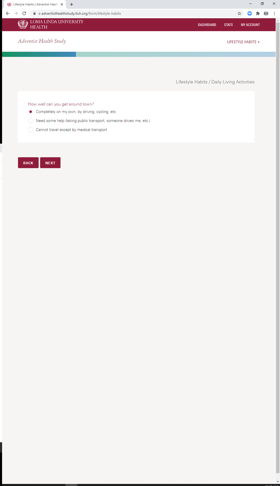 * Daily Living Activities: Travel Dependency