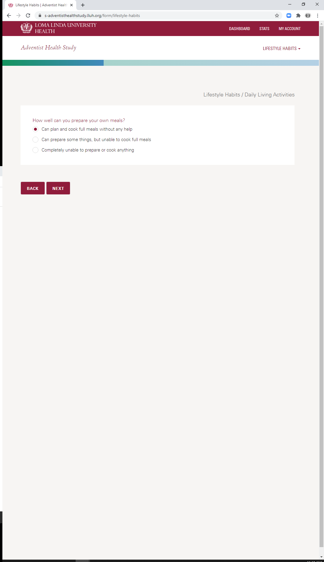 * Daily Living Activities: Meal Prep Dependency