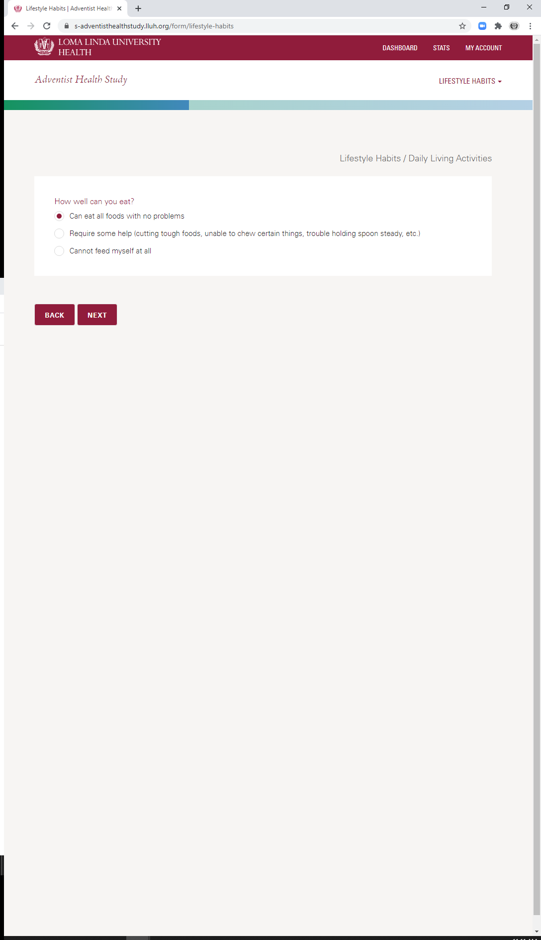 * Daily Living Activities: Eating Dependency