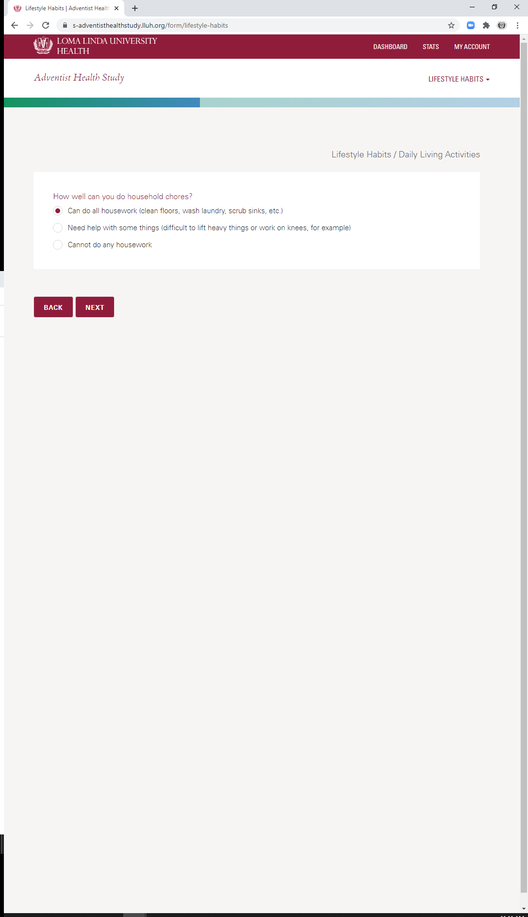 * Daily Living Activities: Household Chores Ability