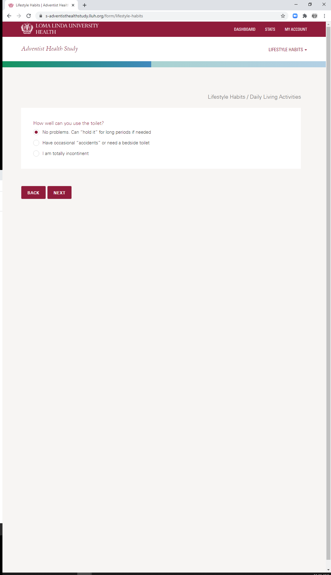 * Daily Living Activities: Toilet Ability