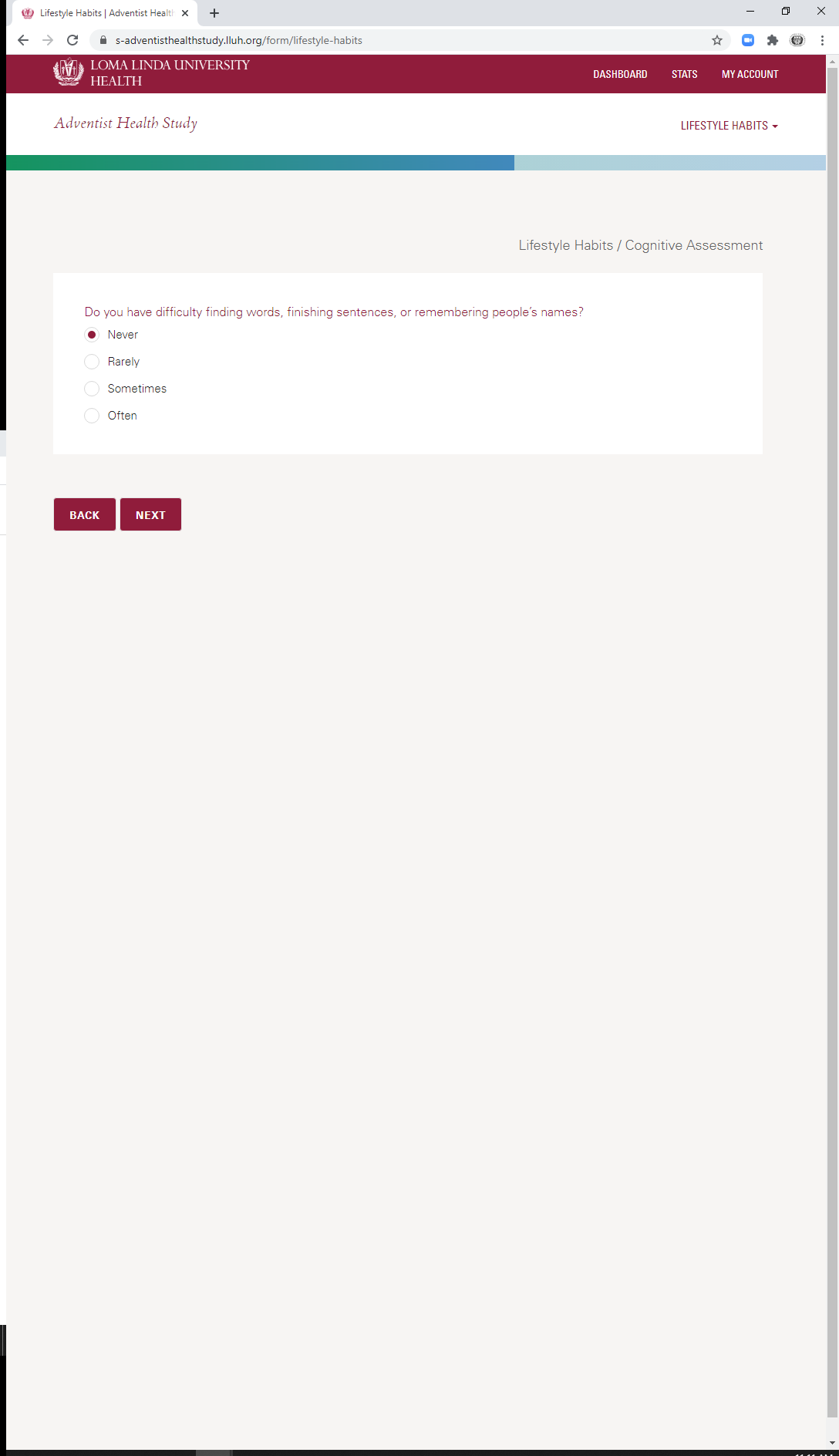 == Cognitive Assessment (only appears for older population) ==