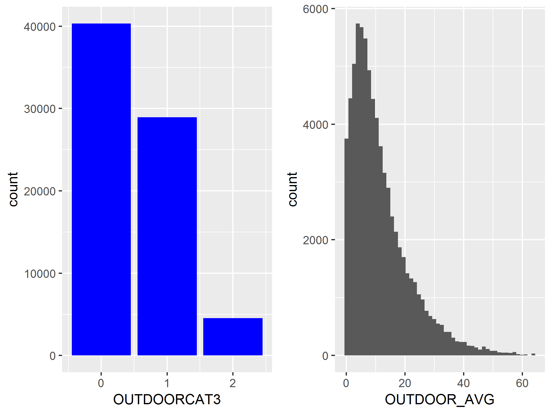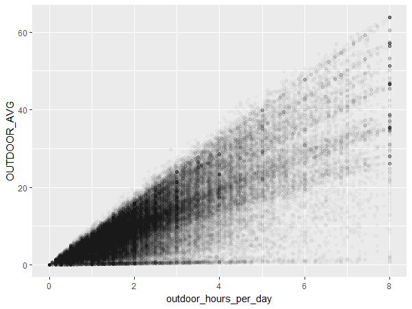 Below is a comparison of the UV-adjusted OUTDOOR_AVG and the average outdoor_hours_per_day.
